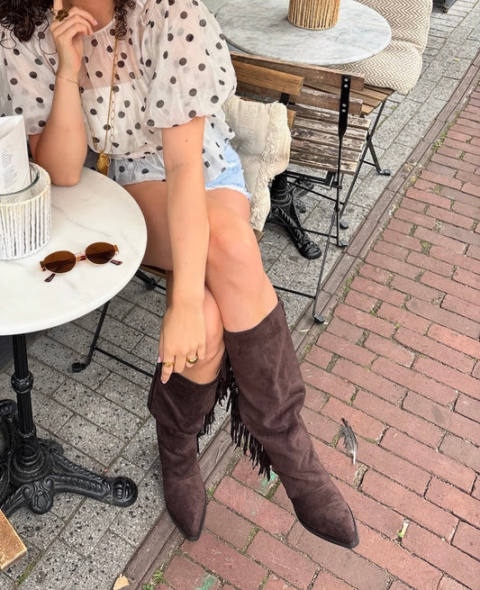 Lauren Ruffle Boots Brown