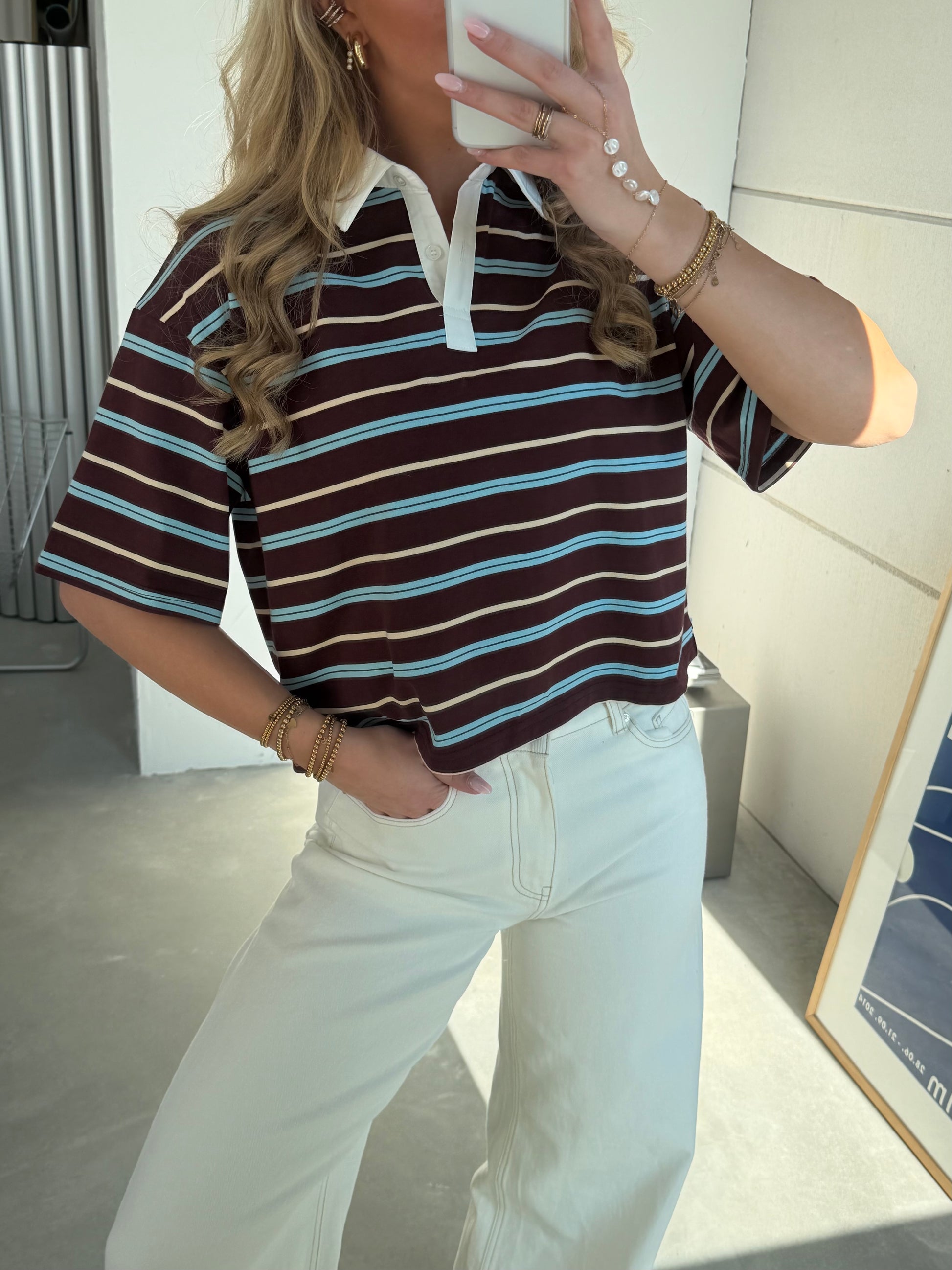 Cropped Polo Bruin/Blauw