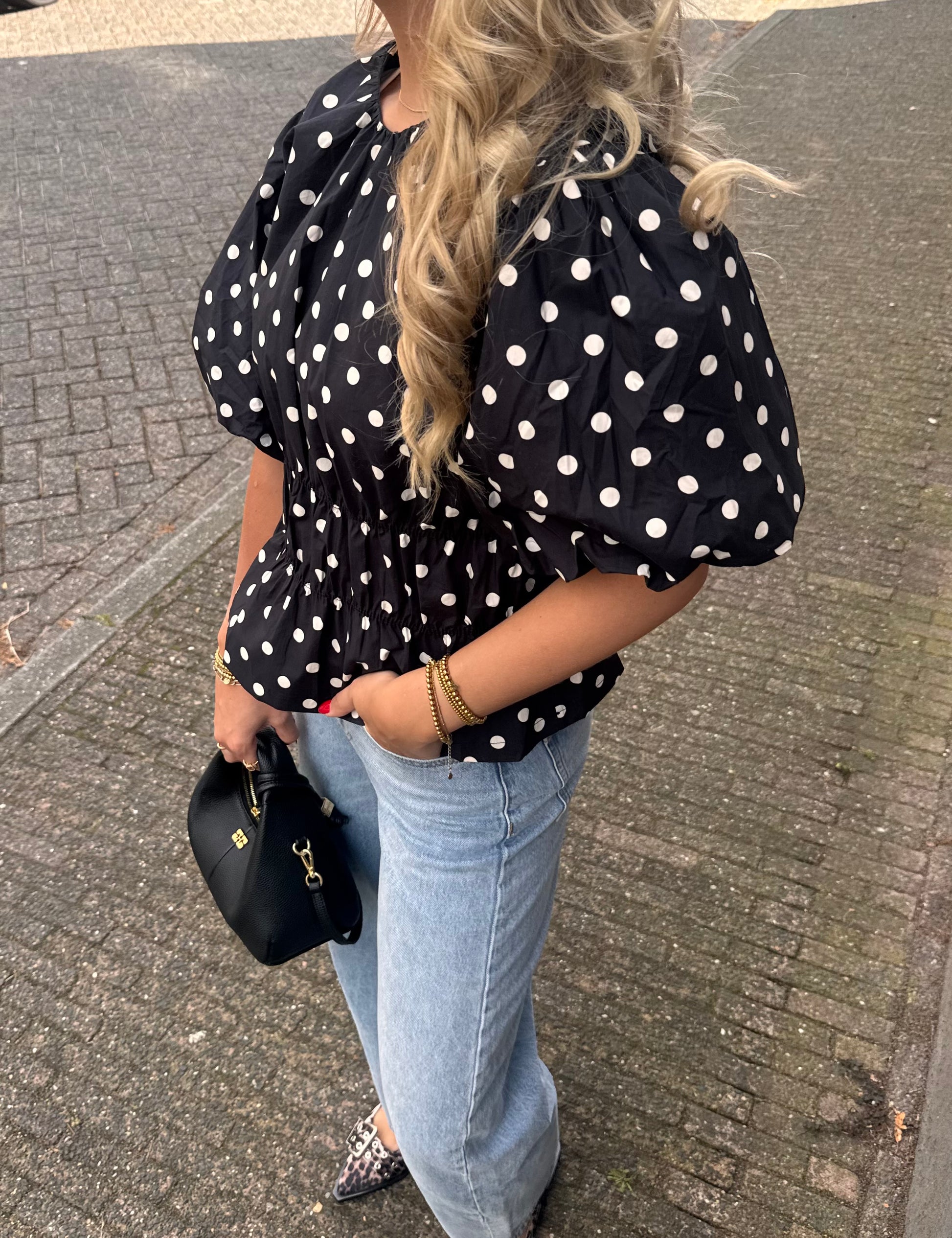 Mega leuke stippen top met een leuk gedrapeerd effect op de taille.