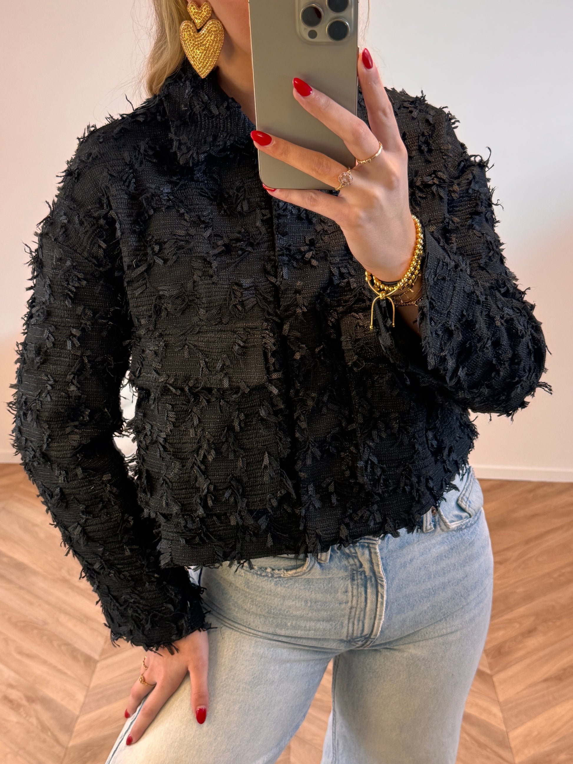 Leuk jack met franjes details. Valt goed op maat